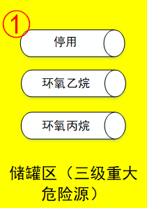二、主要设施:储罐区包括 3 座卧式储罐(自南向北依次为环氧丙烷储罐、环氧乙烷储罐、停用储罐)、罐区泵棚及卸车鹤位。位于厂区西南侧;